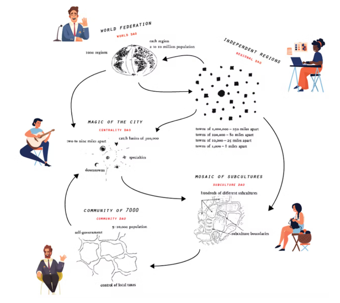 Baboci’s vision channels an older urbanism, when “little platoons” defined community. Maybe 21st century technology takes us back to the patchwork social order of 19th century cities? DAOs become today’s mutual-aid societies?